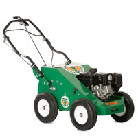 Variable speed self-propelled rear wheel drive & front casters allow you to feather the speed with finger tip control. Reduces fatigue, increases productivity and provides enhanced traction while aerating on slopes. Reverse feature (with tines up) for added maneuverability and ease of loading/unloading.